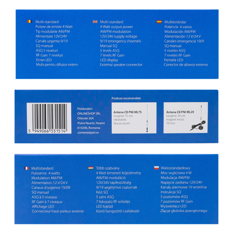 Pentru cine este potrivit/potrivita produsul Această stație este perfectă pentru orice șofer, de la amator la profesionist, care caută o soluție CB discretă, dar complet funcțională. Este ideală pentru vehiculele cu spațiu limitat în bord și pentru șoferii de TIR/camion care circulă internațional, datorită alimentării 12V/24V și funcției multi-bandă.