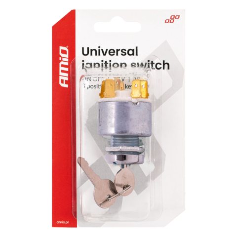 Întrerupător universal cu 3 poziții, pentru contact, 12V Acest întrerupător universal cu 3 poziții de la AMiO este conceput pentru instalațiile electrice din vehicule. Permite activarea controlată a circuitelor electrice și pornirea/oprirea sigură a alimentării în autovehicule. Construcția sa robustă garantează durabilitate și fiabilitate în condițiile specifice utilizării auto.