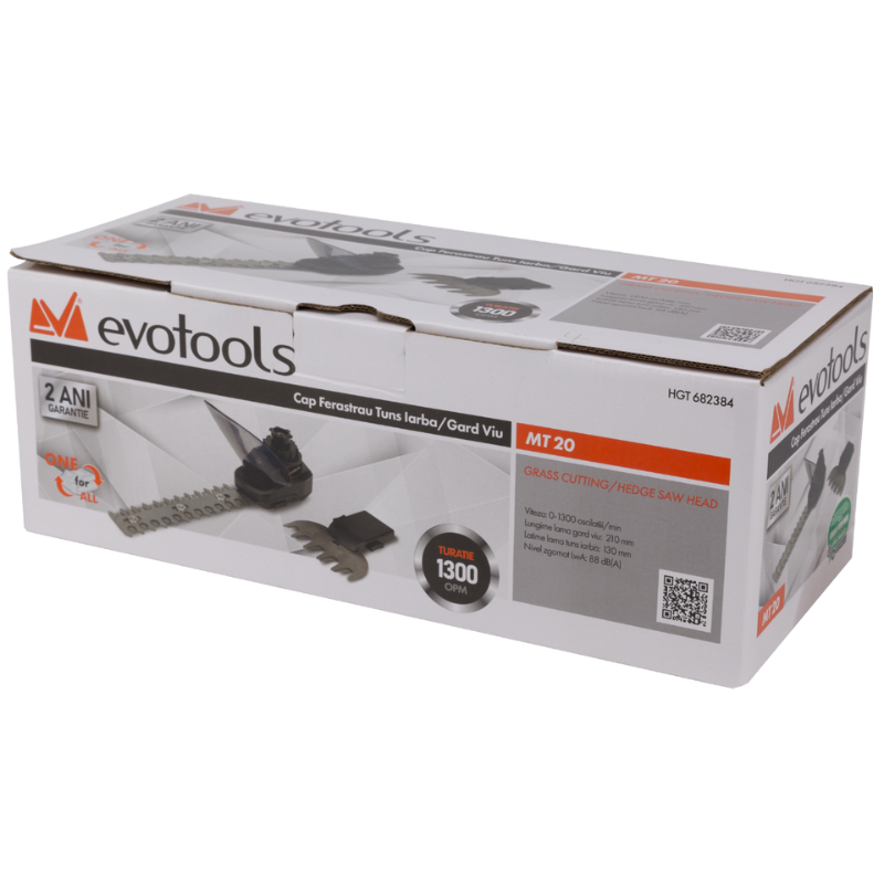 Acest Cap Ferăstrău Tuns Iarba/Gard Viu MT20 este un accesoriu 2-în-1, esențial pentru orice proprietar de casă, fiind proiectat pentru a transforma Mașina de Înșurubat Multifuncțională EPTO Brushless într-o unealtă eficientă de întreținere a spațiilor verzi. Echipat cu lame interschimbabile (210 mm pentru gard viu și 130 mm pentru iarbă) și o viteză de până la 1300 de oscilații pe minut, acest cap permite modelarea și tăierea precisă a gardurilor vii, arbuștilor și marginilor de gazon.