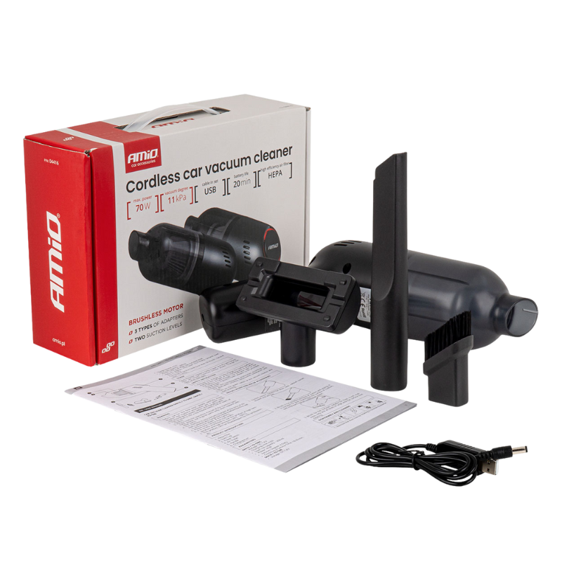 Aspirator auto fara fir, motor brushless, 70W, 11 kPa, filtru HEPA Aspiratorul auto fără fir VC-08 de la AMiO, cu motor brushless, este un dispozitiv puternic și premium, conceput pentru curățarea rapidă și eficientă a interiorului vehiculelor. Motorul de 70W, fără perii, asigură o durată de viață mai lungă, o funcționare mai silențioasă și o eficiență superioară față de modelele cu perii.
