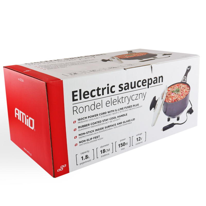 Oală electrică auto 12V, 150W - 1,9L, 18cm Diametru Această oală electrică portabilă este ideală pentru a prepara o masă caldă, supă sau o gustare rapidă direct în mașină, barcă sau rulotă. Alimentată la 12V, este perfectă pentru a încălzi mâncarea în timpul călătoriilor, excursii de camping sau pauzelor de masă. Suprafața sa anti-aderentă și capacul ventilat fac utilizarea ușoară și eficientă.