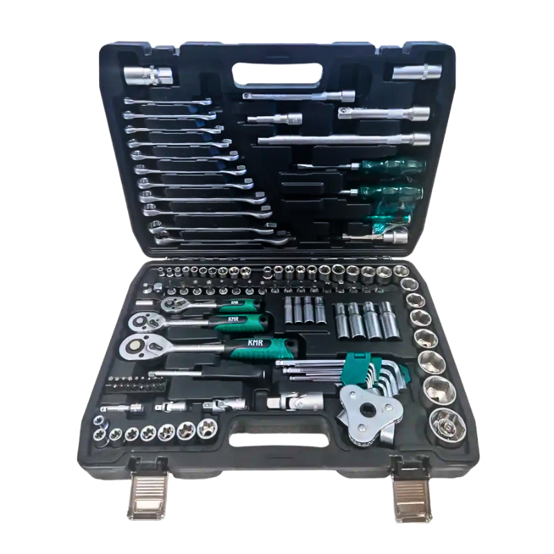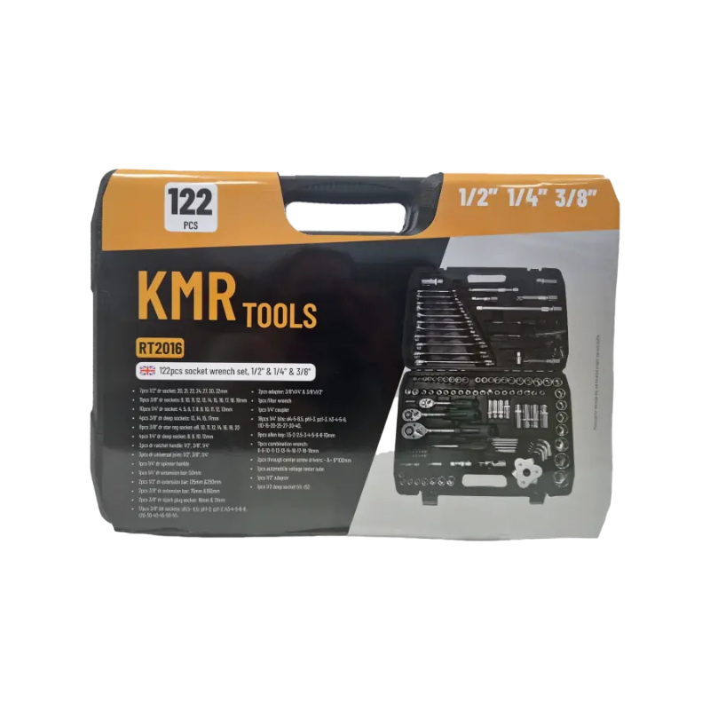 Set complet de 122 de piese, ideal pentru diverse aplicații mecanice și reparații, oferind versatilitate și acces rapid la toate dimensiunile uzuale de chei și tubulare.
