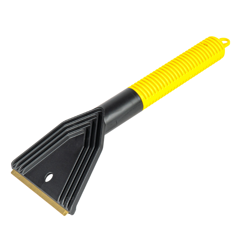 Racletă Gheață Auto 30 cm cu Lamă de Alamă, Mâner Ergonomic Anti-Alunecare Această racletă de gheață este soluția ideală pentru a înlătura rapid și eficient orice strat de gheață sau brumă de pe geamurile mașinii. Instrumentul are o lungime optimă de 30 cm și este prevăzut cu o lamă din alamă, un material durabil care curăță eficient, dar protejează parbrizul de zgârieturi. Mânerul ergonomic, cu striații (corrugat), asigură o priză sigură și confortabilă, chiar și atunci când folosiți mănuși.