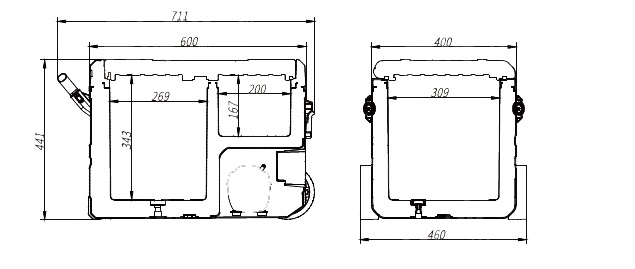 Dimensiuni exterioare: 441 mm x 460 mm x 711 mm (inaltime x latime x lungime)