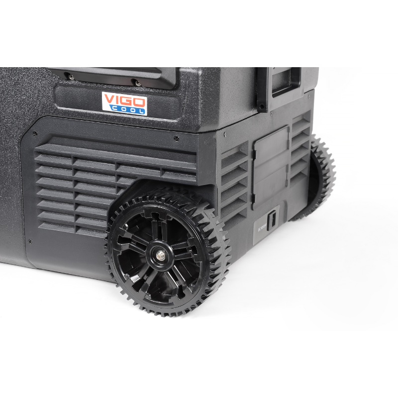 Frigider-congelator portabil cu compresor VIGO COOL V35WR. Perfect pentru călătorii, călătorii sau munca ca șofer. Eficiența ridicată de răcire păstrează alimentele și băuturile proaspete pentru mai mult timp, indiferent de condițiile meteorologice exterioare.
