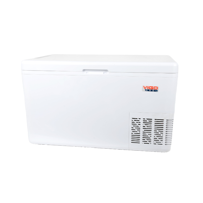 Frigider-congelator portabil cu compresor VIGO COOL V35H. Perfect pentru călătorii, călătorii sau munca ca șofer. Eficiența ridicată de răcire păstrează alimentele și băuturile proaspete pentru mai mult timp, indiferent de condițiile meteorologice exterioare.
