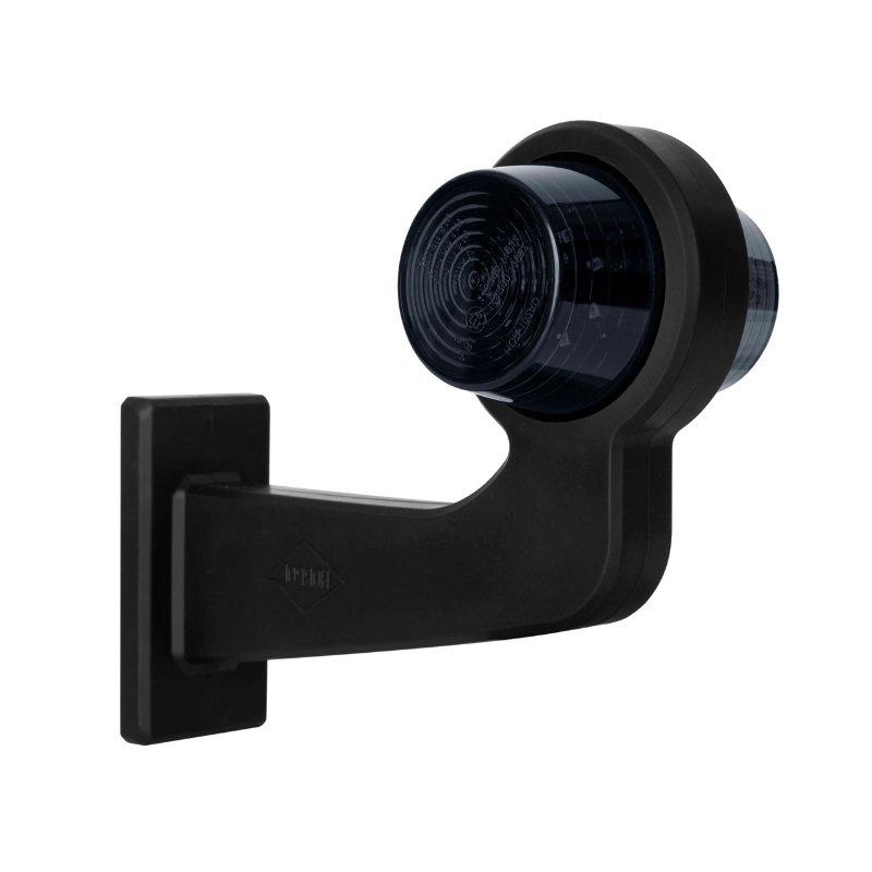 Lampă de gabarit LED Graphite, pe braț lung, 12/24V (Alb-Roșu) O lampă de gabarit cu LED cu design modern din colecția Graphite, montată pe un braț lung. Aceasta asigură vizibilitate excelentă și este disponibilă în variante special concepute pentru montajul pe partea stângă sau pe partea dreaptă a vehiculului. Se remarcă prin lentila sa cu o nuanță închisă, ce combină stilul modern cu funcționalitatea.