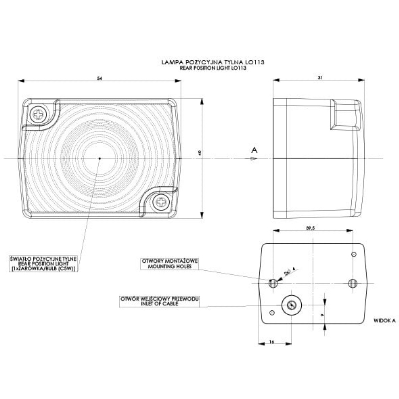Lampă de gabarit dreptunghiulară cu bec, 12/24V (Albă, Roșie, Portocalie) O lampă de gabarit dreptunghiulară, compactă, cu bec, disponibilă în trei variante de culoare. Este o soluție versatilă și simplă pentru semnalizarea vehiculului, asigurând vizibilitate și fiabilitate. Datorită design-ului universal, se poate adapta cu ușurință pe diverse tipuri de vehicule.