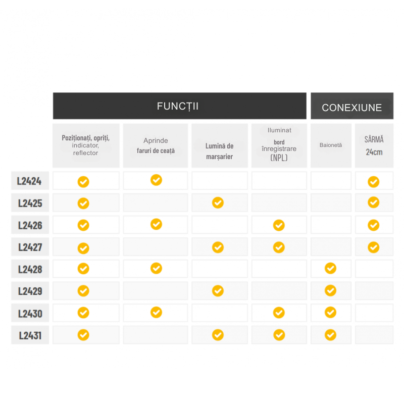 Lampă Număr - Lateral - Codurile L2426 și L2427