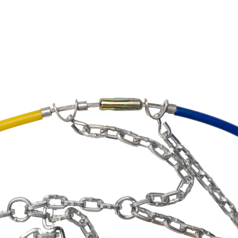 Montaj: Întindeți lanțurile pe sol și treceți cablul prin spatele roții, apoi uniți capetele în partea superioară.