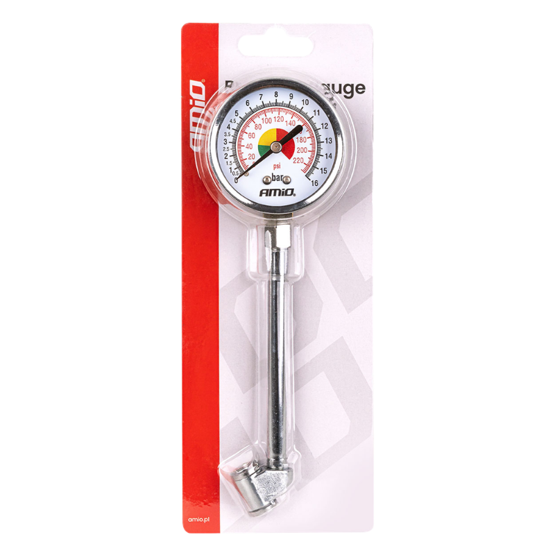 Manometru presiune camion TIR 15 bar PG-15 AMIO-01708 Dispozitivul este conceput pentru verificarea presiunii în roțile vehiculelor. Interval de funcționare până la 15 bar. Execuție foarte bună - manometrul este realizat din metal, ceea ce îl face mai durabil. Mic, ușor, ușor de transportat. Un accesoriu esențial pentru fiecare mașină. Calitate garantată de la o companie de renume.
