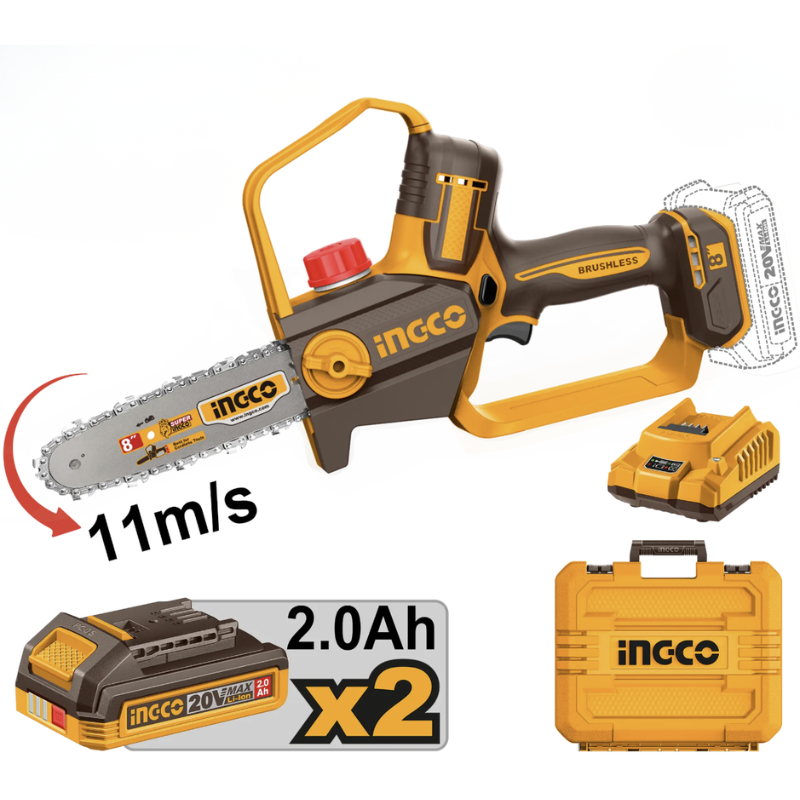 INGCO Fierastrau electric cu acumulator, 20V, lama 20cm, brushless, 2 baterii 2Ah