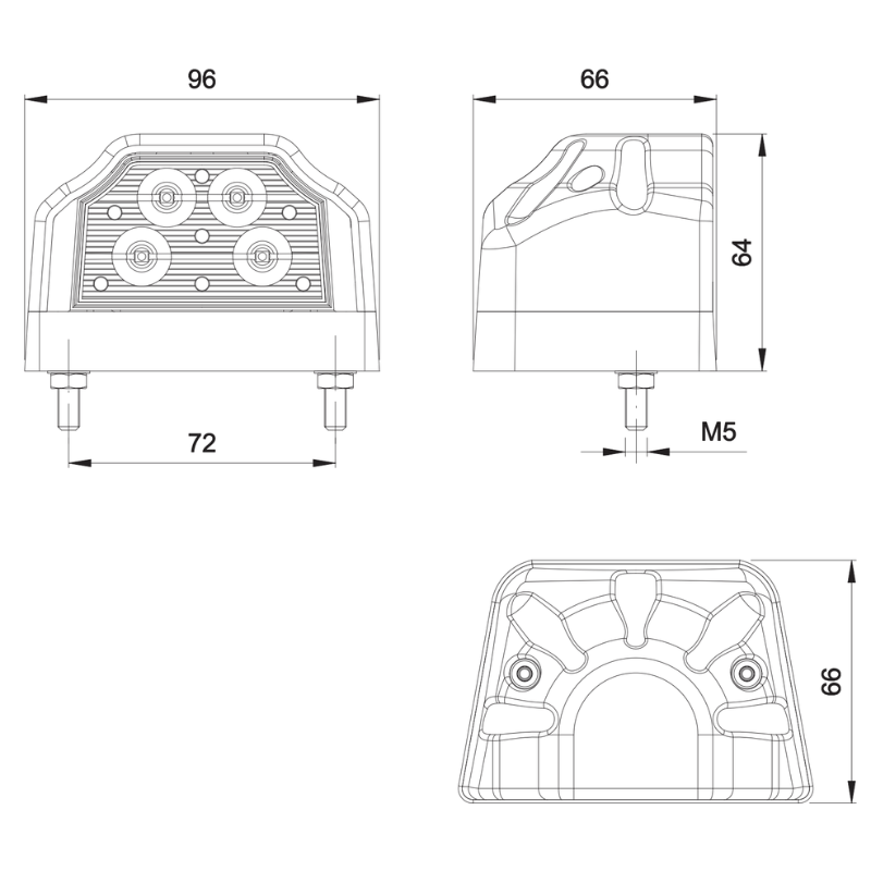 Lampă LED pentru iluminarea plăcuței de înmatriculare, echipată cu funcție suplimentară de poziție și compatibilă cu sisteme de 12V și 24V. Dispune de cablu de 0,5 m și conector QS075 pentru montare rapidă și ușoară. Oferă consum redus de energie și funcționare stabilă, fiind certificată EMC și omologată european E9. Dispersorul din PC asigură rezistență la șocuri în utilizare.