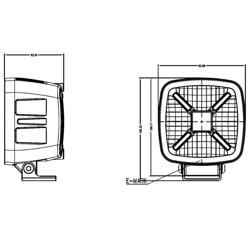 Iluminare Excelentă: Puterea mare de 60W și fasciculul răspândit (flood) cu o rază de acțiune de până la 80 m asigură o vizibilitate laterală și pe teren excelentă, sporind siguranța operațiunilor.