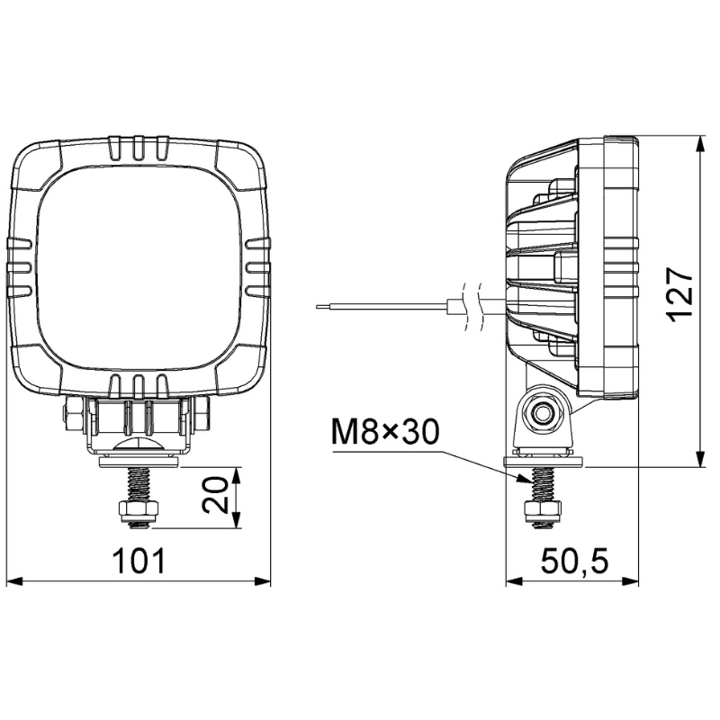 Conținutul Pachetului Proiector LED de lucru cu lumină roșie (inclusiv cablu de 1,5 m) și sistem de fixare (știft M8x30, piulițe, șaibă de reglare).