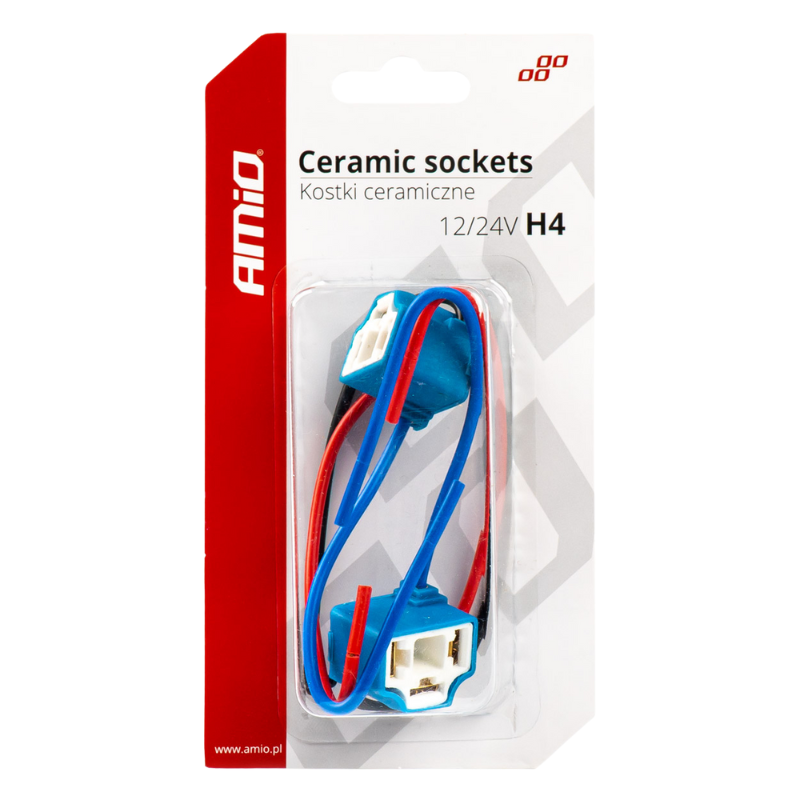 Set de două socluri/mufe de conectare ceramice cu unghi (în formă de bloc), proiectate pentru becuri auto de tip H4. Fabricate din material ceramic, acestea oferă o rezistență la temperaturi extrem de ridicate, prevenind topirea și arderea conectorilor din plastic, problemă frecventă la becurile H4 cu putere mare. Sunt soluția ideală pentru înlocuirea mufelor uzate sau pentru instalarea unui nou cablaj la farurile vehiculelor care funcționează la 12V sau 24V. Fiecare soclu beneficiază de o carcasă izolatoare robustă și cabluri prevăzute cu tub de silicon.