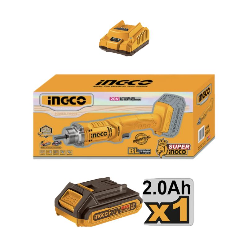 1 × Acumulator 20V 2.0Ah (cu indicator al nivelului de încărcare).
