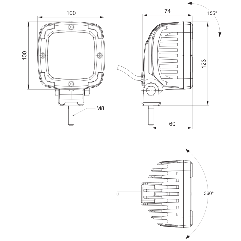 Fixare: Montați lampa pe utilaj sau vehicul folosind suportul articulat. Dimensiunile reduse permit instalarea chiar și în locurile unde spațiul este critic.