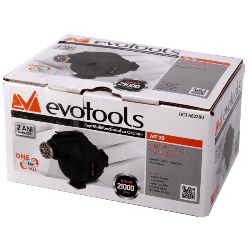 Cap Multifuncțional cu Oscilații MT20, 21000 Oscilații/Minut, Sistem Quick Release, Accesorii Incluse Acest Cap Multifuncțional cu Oscilații (Multi-Function Tool Head) MT20 este un accesoriu inovator și extrem de versatil, conceput pentru a transforma Mașina de Înșurubat Multifuncțională EPTO Brushless într-o unealtă oscilantă pentru o gamă largă de aplicații. Cu o viteză de până la 21000 de oscilații pe minut și un sistem Quick Release pentru schimbarea rapidă a accesoriilor, acest cap este ideal pentru tăiere, șlefuire și răzuire în spații greu accesibile, asigurând precizie și finisaje curate.