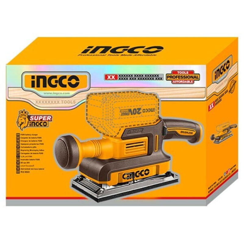 Șlefuitor Orbital Fără Fir INGCO, 20V, Motor Fără Perii (Brushless), 13.000 RPM, Bază 90x180 mm Acest șlefuitor orbital, parte a platformei INGCO P20S, este echipat cu un Motor Fără Perii (BL Motor), asigurând performanțe profesionale, o durată de viață extinsă și eficiență energetică. Cu o viteză impresionantă de 13.000 de rotații pe minut (rpm) și o bază stabilă de 90 x 180 mm din aluminiu durabil, este instrumentul ideal pentru finisarea rapidă și precisă a suprafețelor din lemn, metal sau plastic. Designul ergonomic oferă manevrare ușoară și confort sporit în timpul lucrărilor de durată.